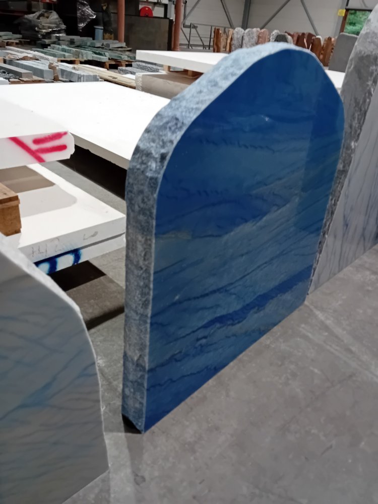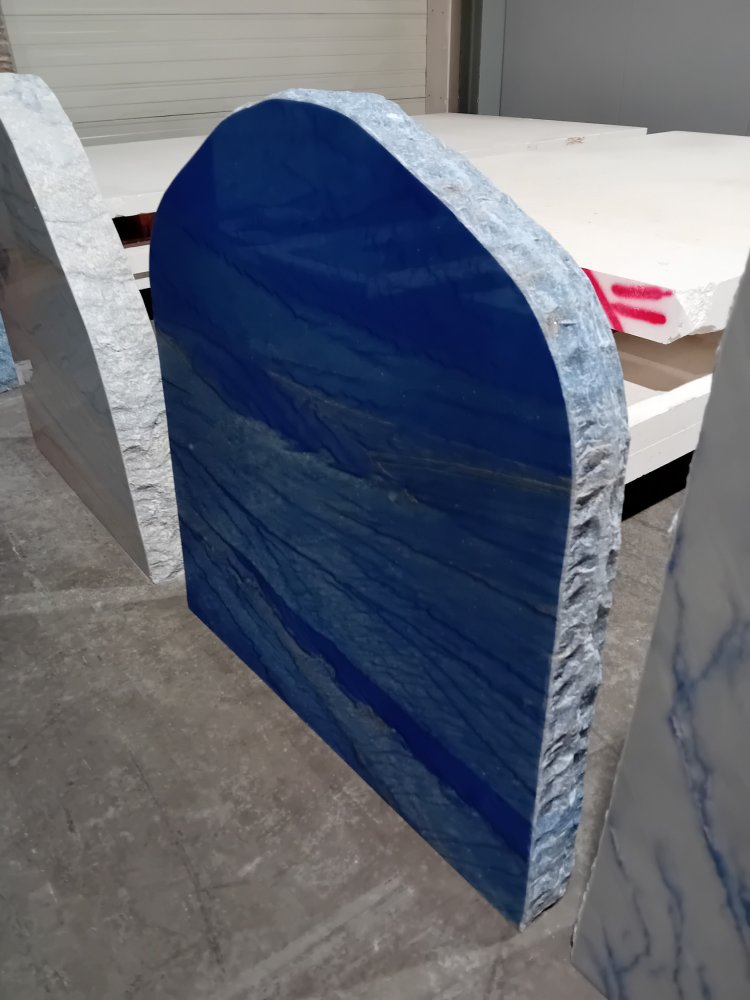 Deze gedenksteen van Azul macauba kwartsiet met een gepolijste voorkant en bekapte zijden word gevonden in Brazilië en heeft een mooie diepe blauw/witte adering. Deze gedenksteen is tevens verkrijgbaar met een gebrande voorzijde.