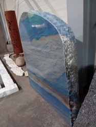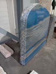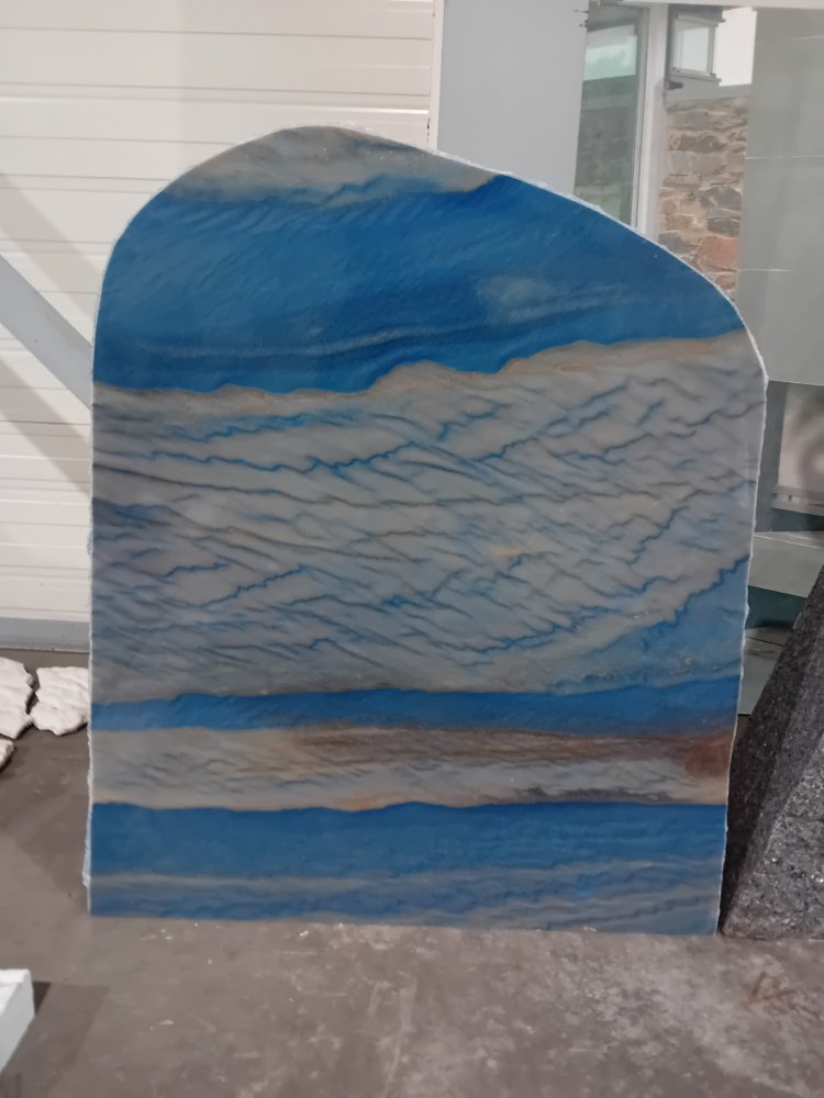 Deze gedenksteen van Azul macauba kwartsiet met een gepolijste voorkant en bekapte zijden word gevonden in Brazilië en heeft een mooie diepe blauw/witte adering. Deze gedenksteen is tevens verkrijgbaar met een gebrande voorzijde.