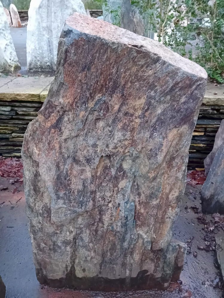 Deze grafsteen van Franse leisteen met een mooie robuste ruwe uitstraling word gevonden in Frankrijk heeft een mooie roestachtige kleur met zwarte binnenkant. Doordat de steen van de binnenzijde zwart is hebben wij hem ook met gepolijste accenten op voorraad. Ook deze gedenksteen is goed te combineren met cortenstaal.