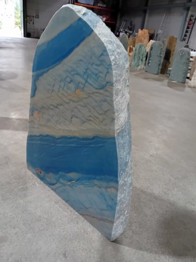 Deze gedenksteen van Azul macauba kwartsiet met een gepolijste voorkant en bekapte zijden word gevonden in Brazilië en heeft een mooie diepe blauw/witte adering. Deze gedenksteen is tevens verkrijgbaar met een gebrande voorzijde.