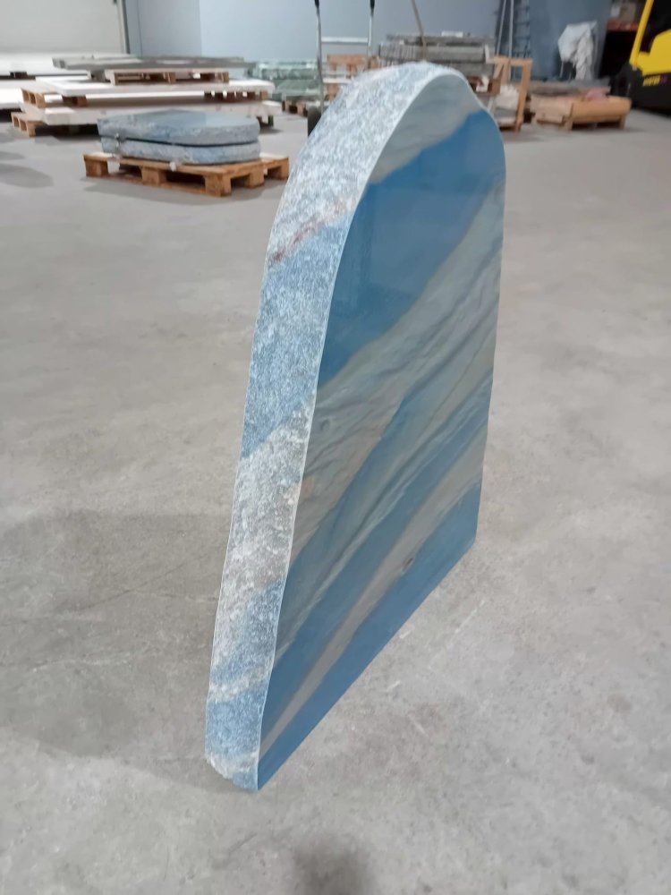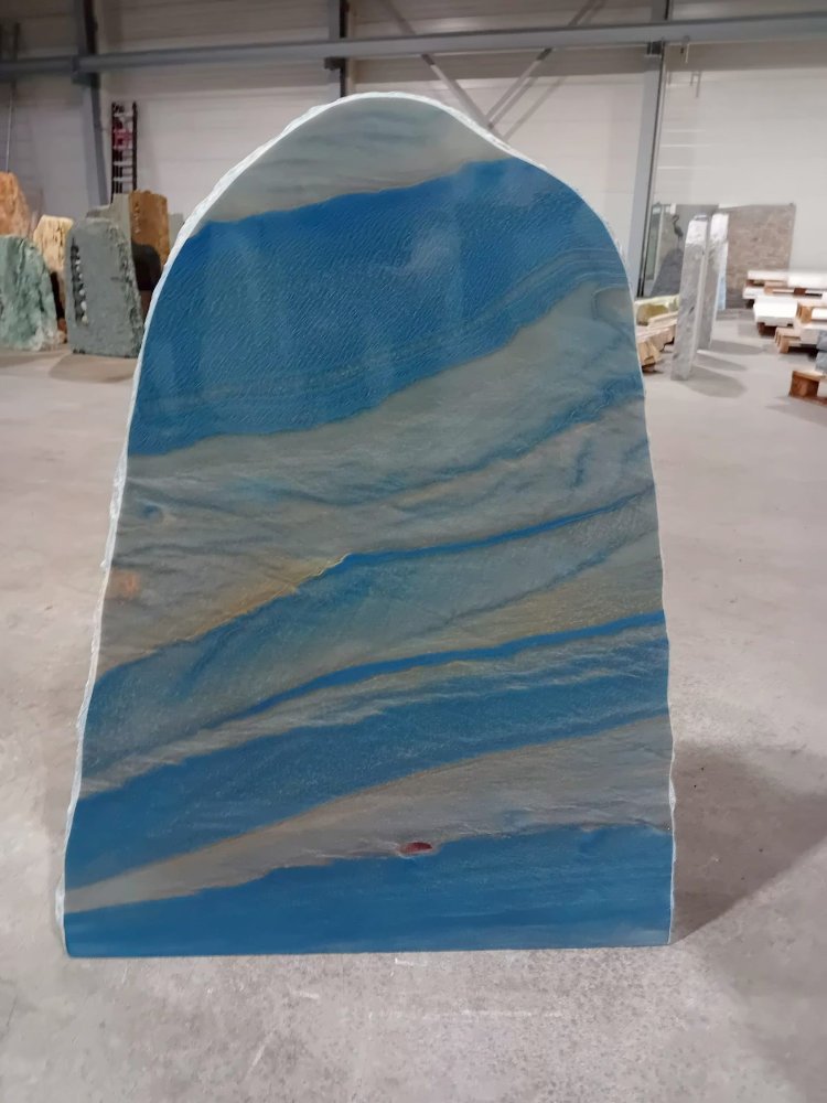 Deze gedenksteen van Azul macauba kwartsiet met een gepolijste voorkant en bekapte zijden word gevonden in Brazilië en heeft een mooie diepe blauw/witte adering. Deze gedenksteen is tevens verkrijgbaar met een gebrande voorzijde.